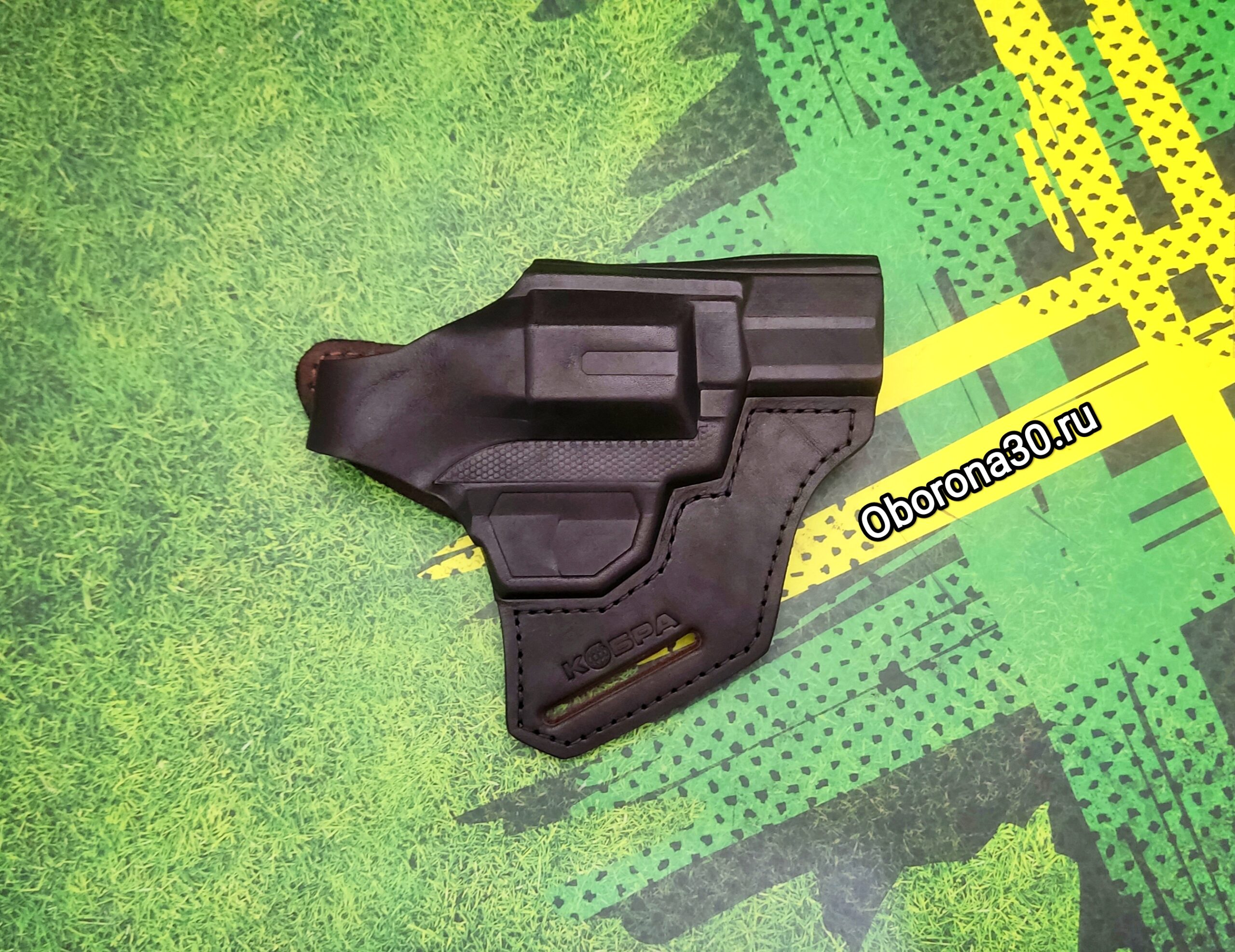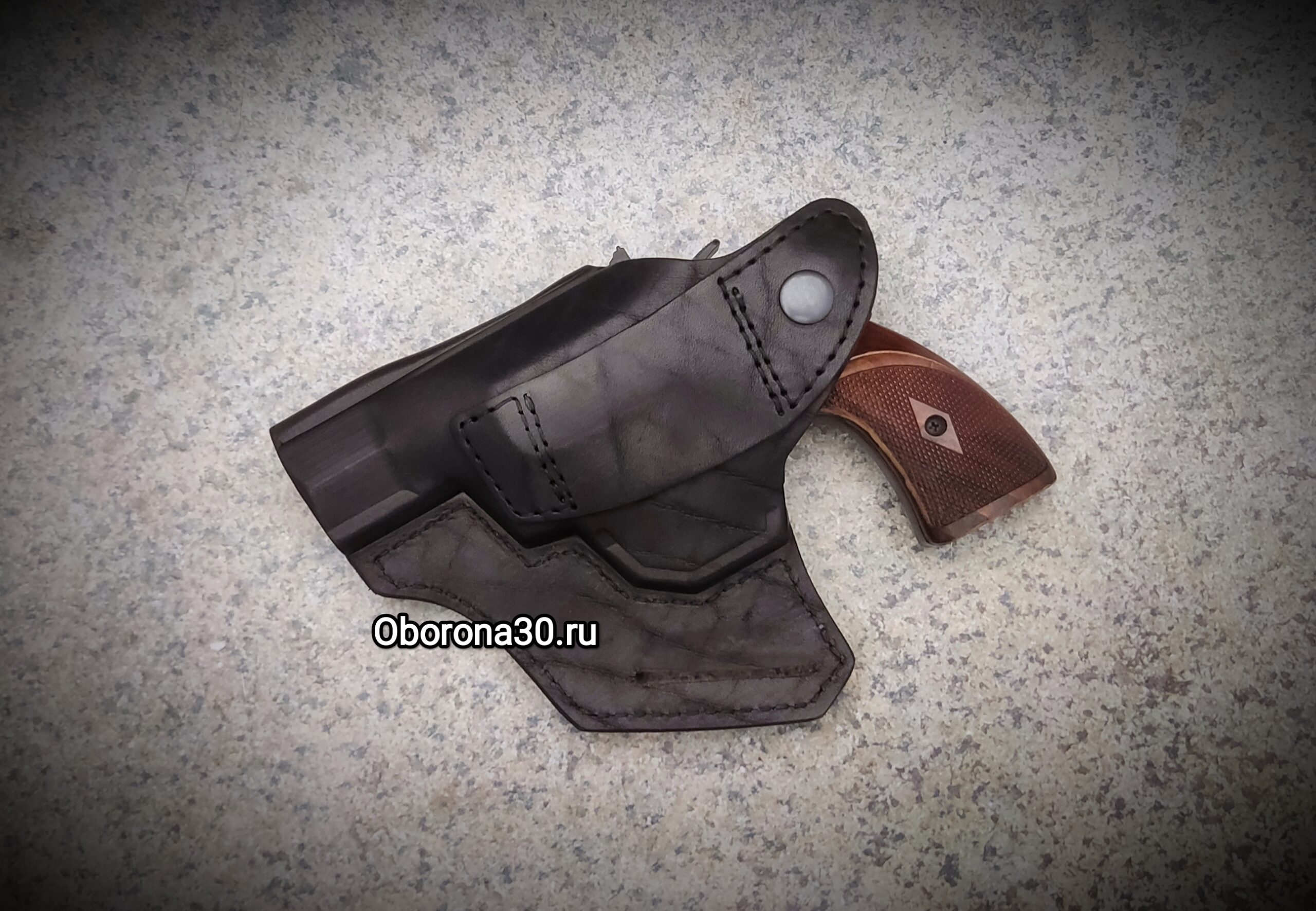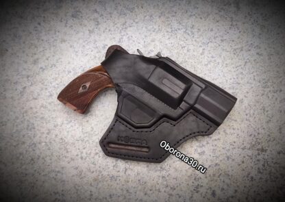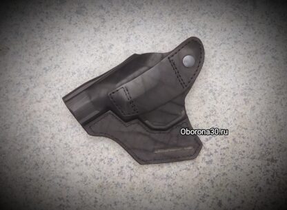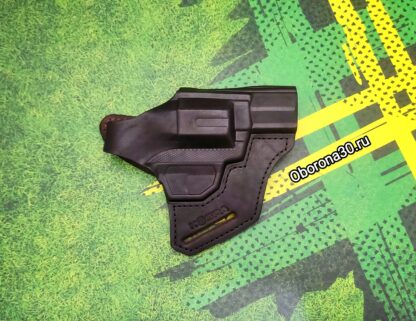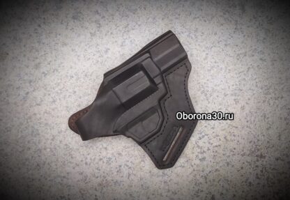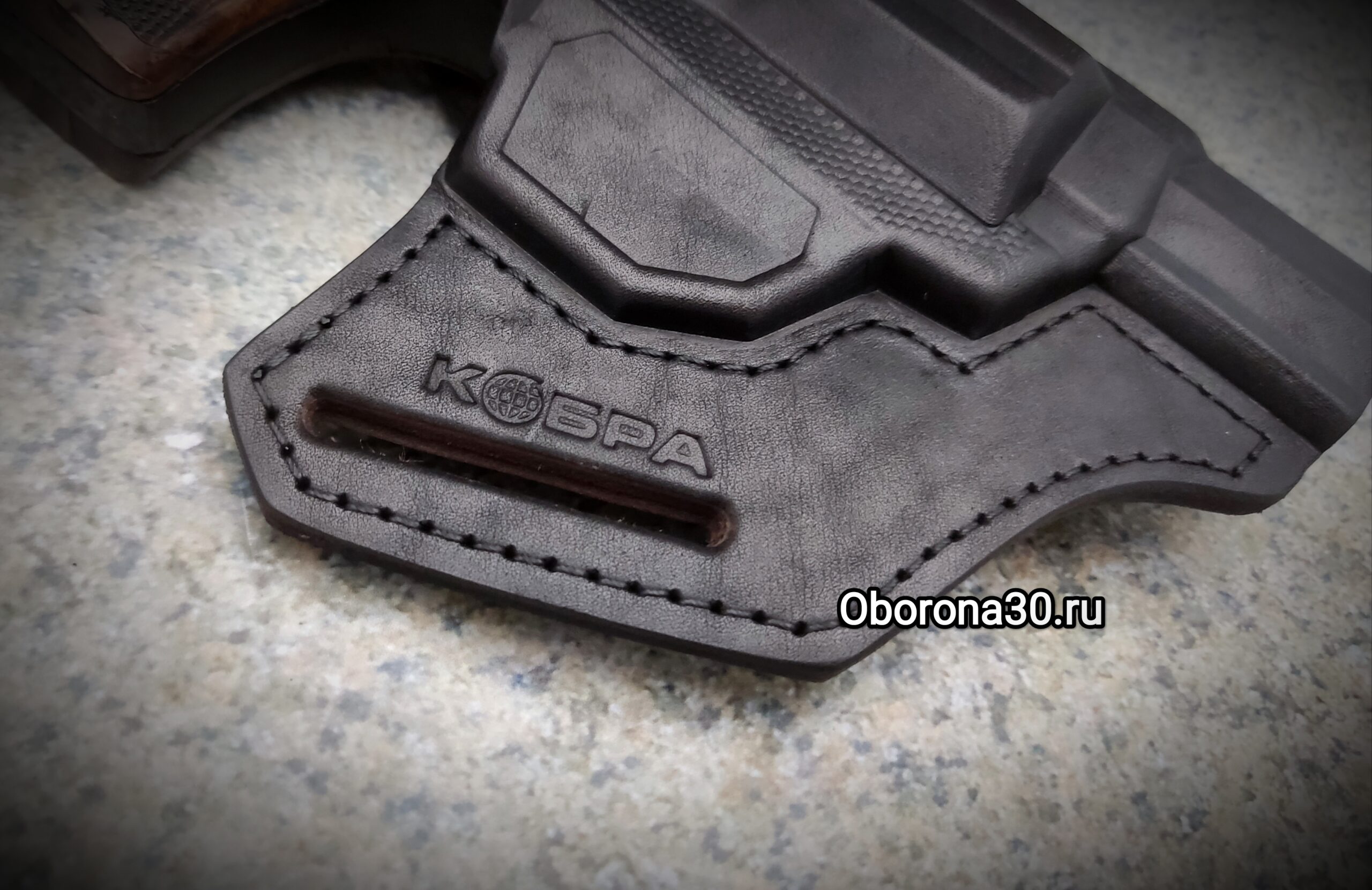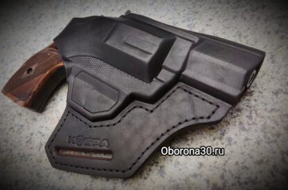 Жесткая формованная кобура обеспечивает защиту пистолета от внешних воздействий, его комфортную переноску. Произведена из толстой натуральной кожи. Снаружи имеется тиснение, повторяющее форму револьвера.