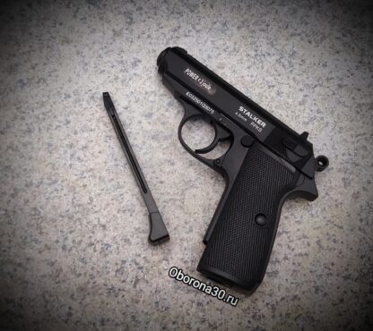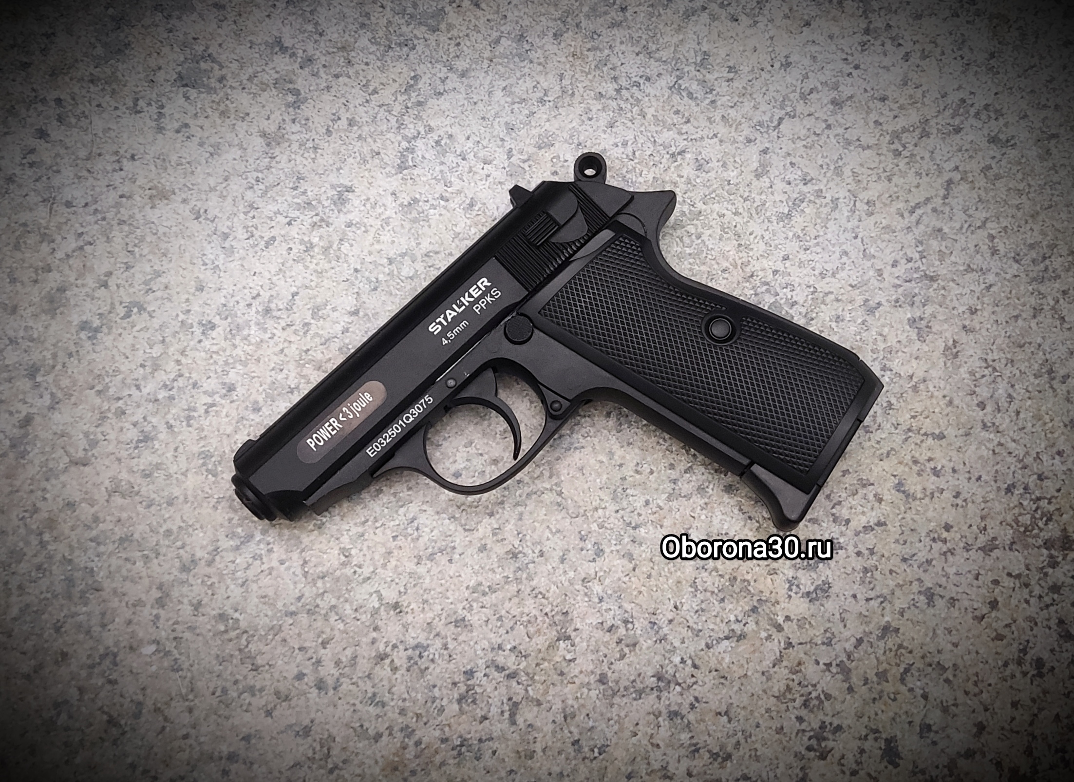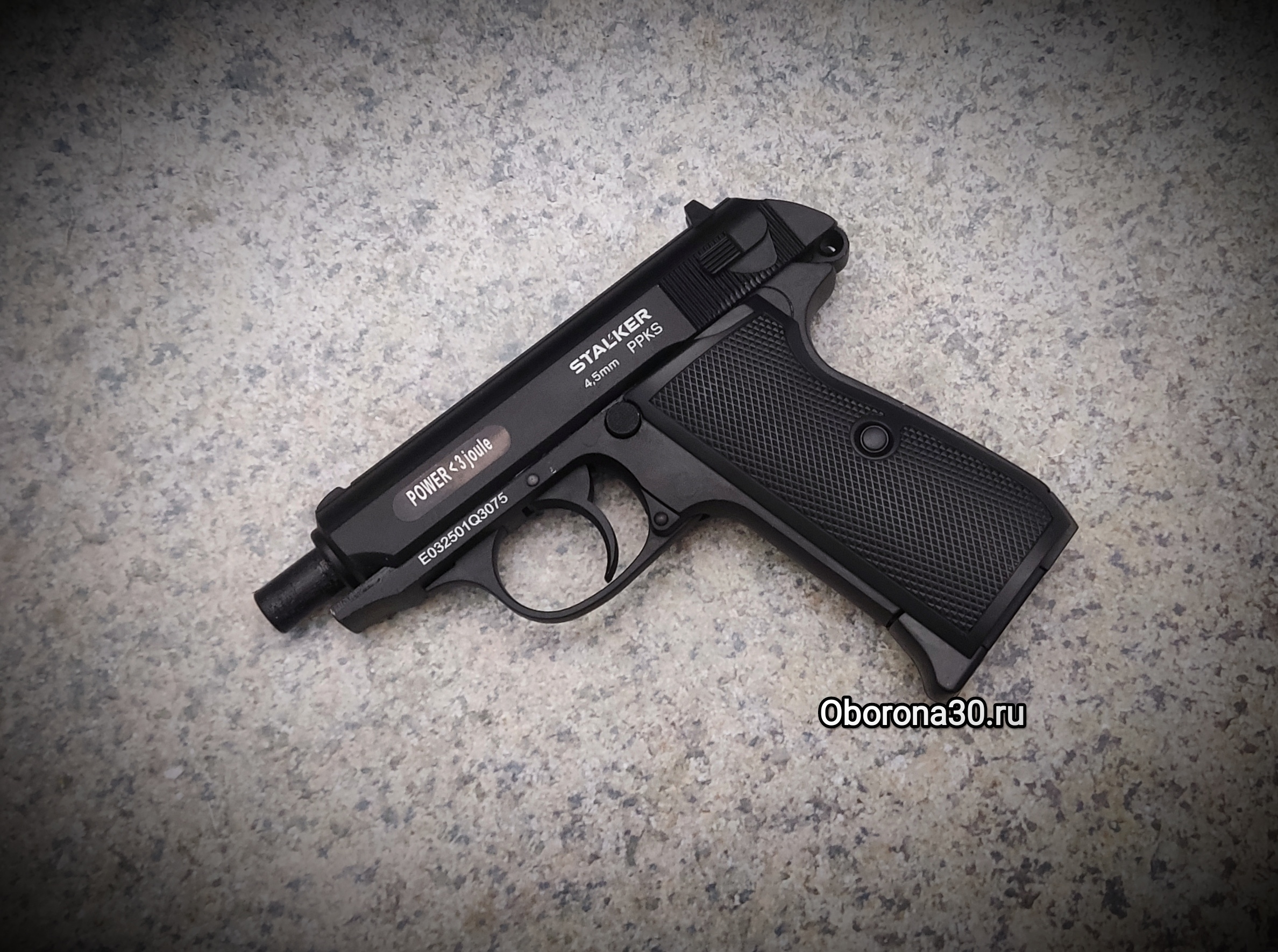 Внешне практически неотличим от боевого прототипа. Пневматический пистолет Walther PPK/S — это газобаллонная лицензионная версия боевого немецкого пистолета от известного бренда пневматического оружия Stalker. Пистолет с функцией Blowback. Система Блоубек обеспечивает подвижность затвора во время стрельбы за счет затрат порций газа, благодаря ей образуется эффект отдачи и имитация выброса отстрелянной гильзы, создается ощущение стрельбы из боевого пистолета.